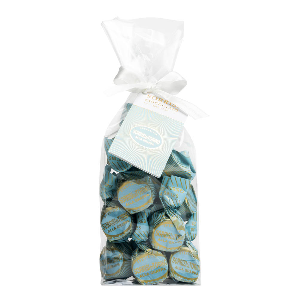 Sugar, cocoa paste (non-EU), cocoa butter, grappa alcohol 7%, starch, glucose syrup, whole MILK powder, skimmed MILK powder, modified starch, thickener: E407 (carrageenan), preservative E202 (potassium sorbate), Piedmont HAZELNUT paste PGI (EU), flavourings, colours: beta carotene and curcumin, emulsifier: SOY and sunflower lecithin, natural vanilla flavouring.