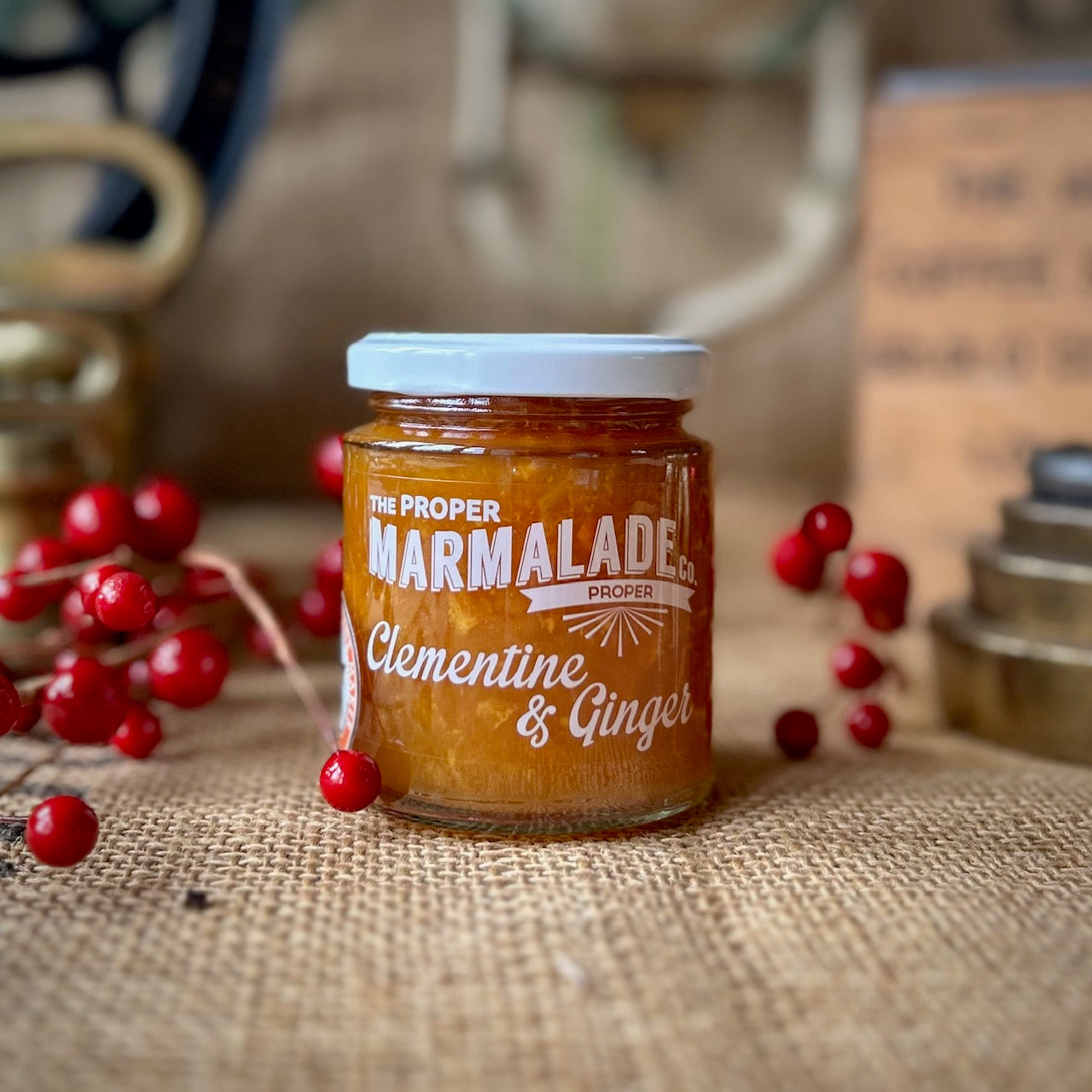 Bright, fragrant, and beautifully warming, The Proper Marmalade Company’s Clementine & Ginger Marmalade is a jar of pure artisan indulgence. Crafted in small batches, this luxurious preserve blends the natural sweetness of ripe clementines with the gentle heat of fresh ginger, creating a perfectly balanced flavor that’s both vibrant and comforting.