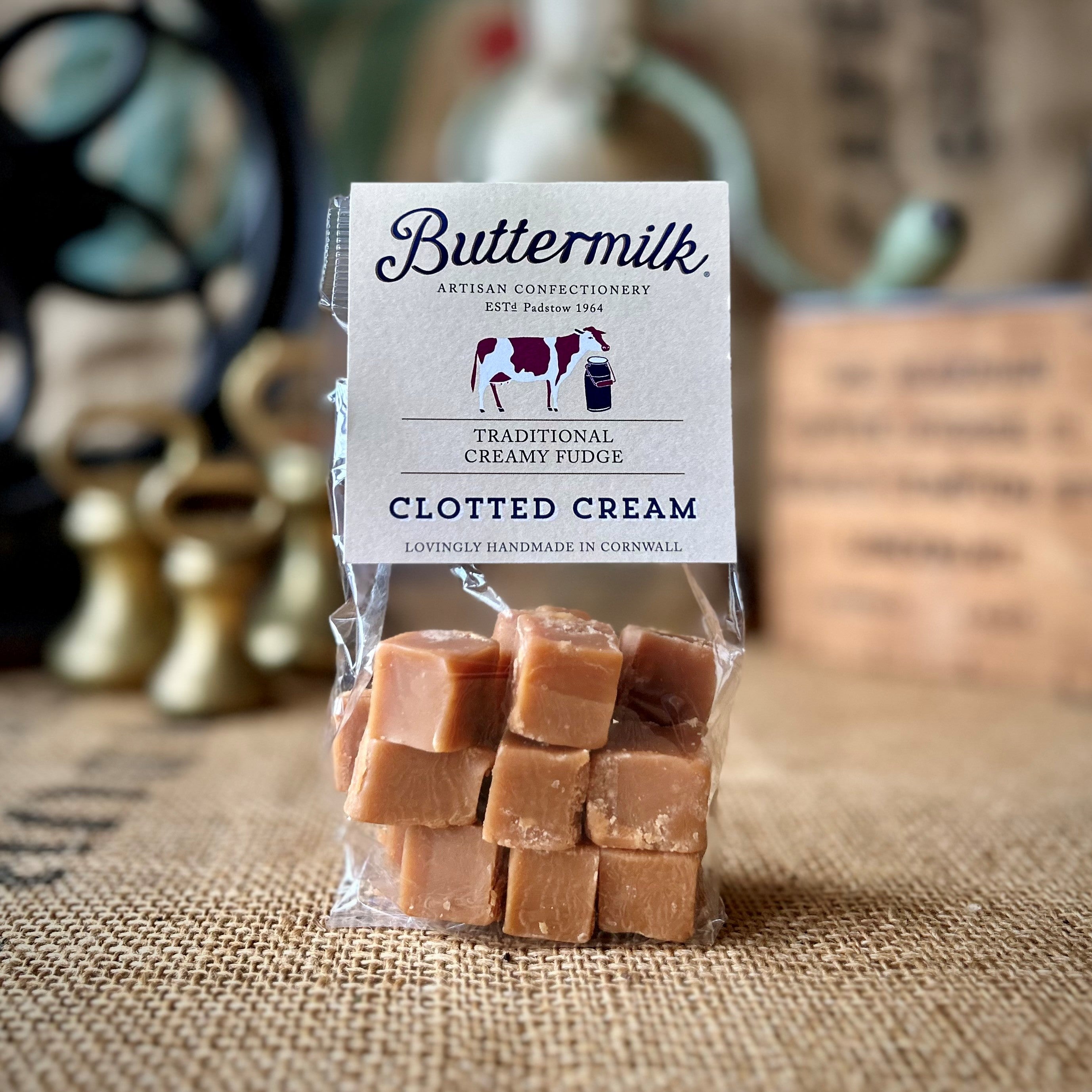 Enjoy handcrafted fudge blended with Clotted Cream for a perfectly soft, creamy, and sweet treat. Buttermilk has proudly crafted award-winning Cornish sweets since 1964, delivering indulgence in every bite.