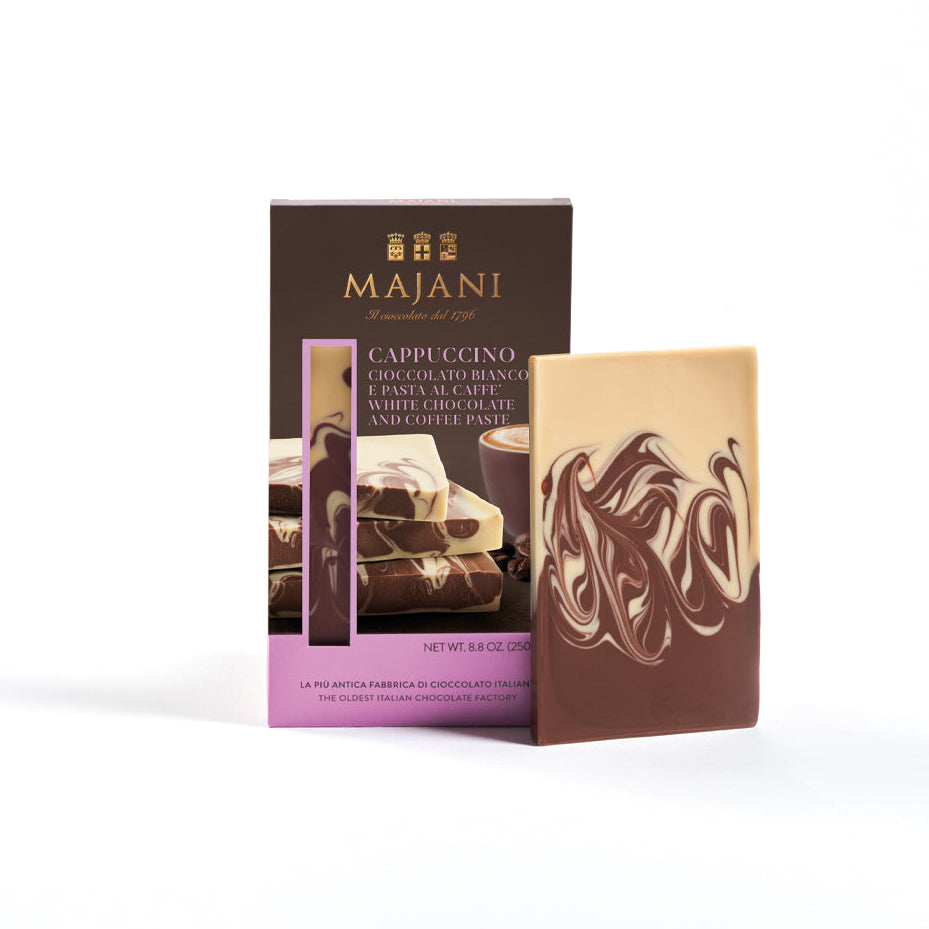 Experience the taste of Italian coffee culture in chocolate form with Majani’s Cappuccino Snap Bar. Smooth, creamy white chocolate is blended with rich coffee paste, capturing the perfect harmony of a freshly made cappuccino — sweet, aromatic, and irresistibly smooth.